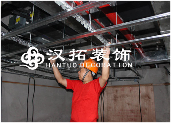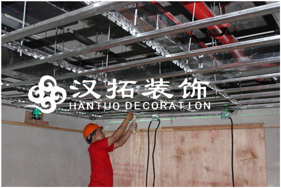 (1)龍骨制作。禁止輕鋼龍骨與木龍骨混合使用。目的:不同材質(zhì),結(jié)合不穩(wěn)定,易引起天花板后期開(kāi)裂。
