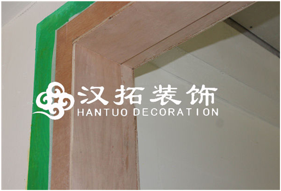 B、門(mén)套線(xiàn)底板用9厘板襯底,門(mén)套上方轉(zhuǎn)角開(kāi)“7”形。目的:防止開(kāi)裂。
