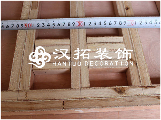 A、用15厘細(xì)木工板開(kāi)條,將已裁好的飾面板背面朝上,將15厘板條涂好白乳膠粘貼在飾面板上形成框架,再在上面粘貼一層飾面板。
