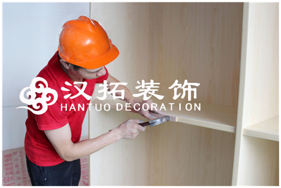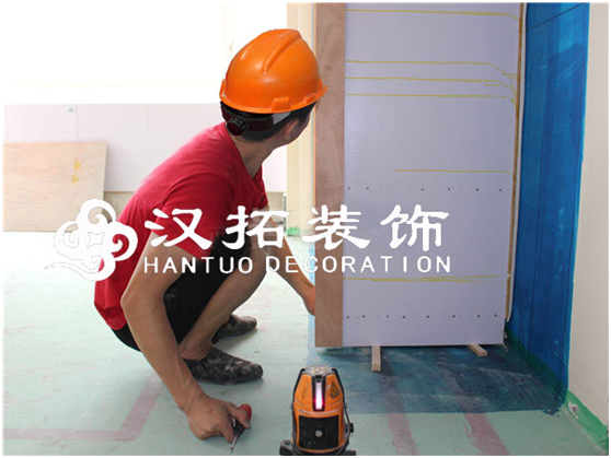 衣柜固定應(yīng)用紅外線(xiàn)水平儀調(diào)平,再用木楔釘入確保穩(wěn)固。