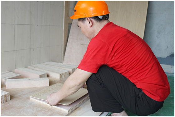 C、貼飾面板:在壓好成型的門(mén)扇模坯正反二面用白乳膠各粘貼一層3mm飾面板,再按照壓模坯的方法壓12天左右。