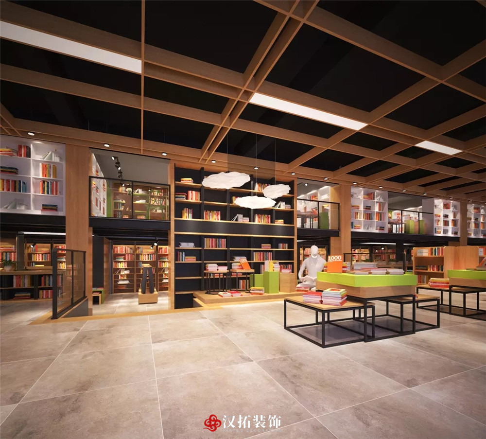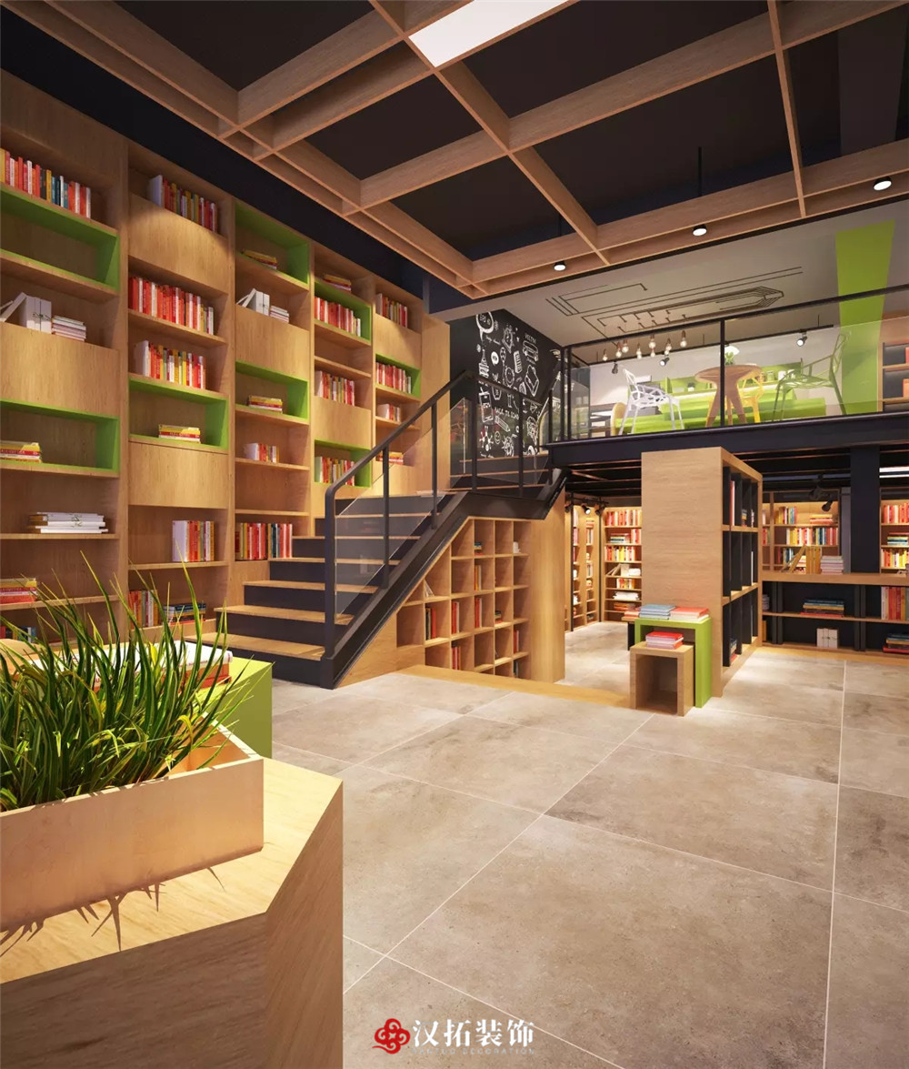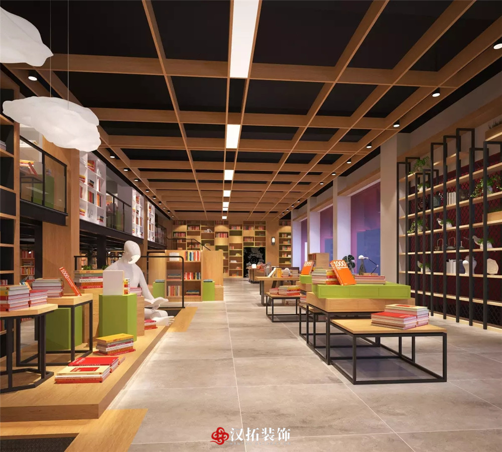 設(shè)計說明:整體光線明亮,適宜閱讀,不同類型的圖書展覽架使用不同的材質(zhì)和顏色作為區(qū)分,注重讀者體驗,整個空間有格調(diào),有層次,充滿精神享受。
