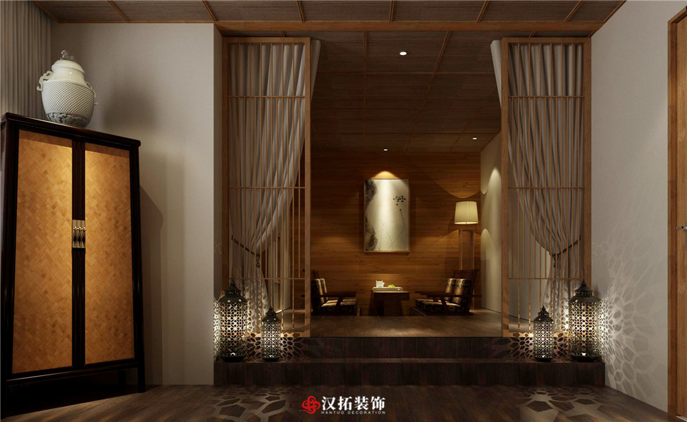 設計說明:將古韻揉入每一寸設計中,貫穿于空間和置物的禪意,隨時給人一種優(yōu)雅和從容的感覺,精致的藝術品擺設也給整個空間增添優(yōu)雅之感。