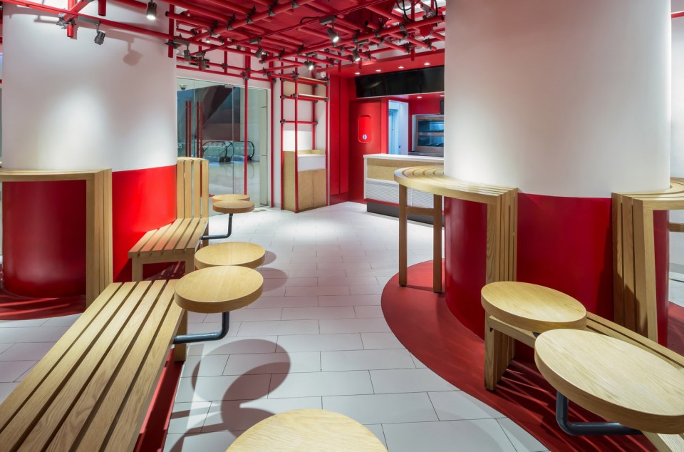 設(shè)計(jì)說明:該咖啡廳是由南京漢拓裝飾工程有限公司裝修的。南京漢拓裝飾的設(shè)計(jì)師融入了自己對(duì)于餐飲行業(yè)的特殊性思考,結(jié)合了業(yè)主的意見,給予了紅色主題的亮點(diǎn)打造。在簡(jiǎn)餐咖啡廳的裝修中,環(huán)境設(shè)計(jì)需要一眼就能打動(dòng)食客,還要顯得干凈不繁雜。南京漢拓設(shè)計(jì)師將天花板的地方設(shè)計(jì)成了腳手架造型,再點(diǎn)綴以小射燈,一下子就增添了墻面的立體感,整個(gè)店面裝修設(shè)計(jì)的造型是環(huán)繞,讓空間利用率達(dá)到最大化。原木色桌椅也生動(dòng)不占空間。空間內(nèi)紅色忽明忽暗,增加了孔家的通透性,讓環(huán)境一下子生動(dòng)起來。