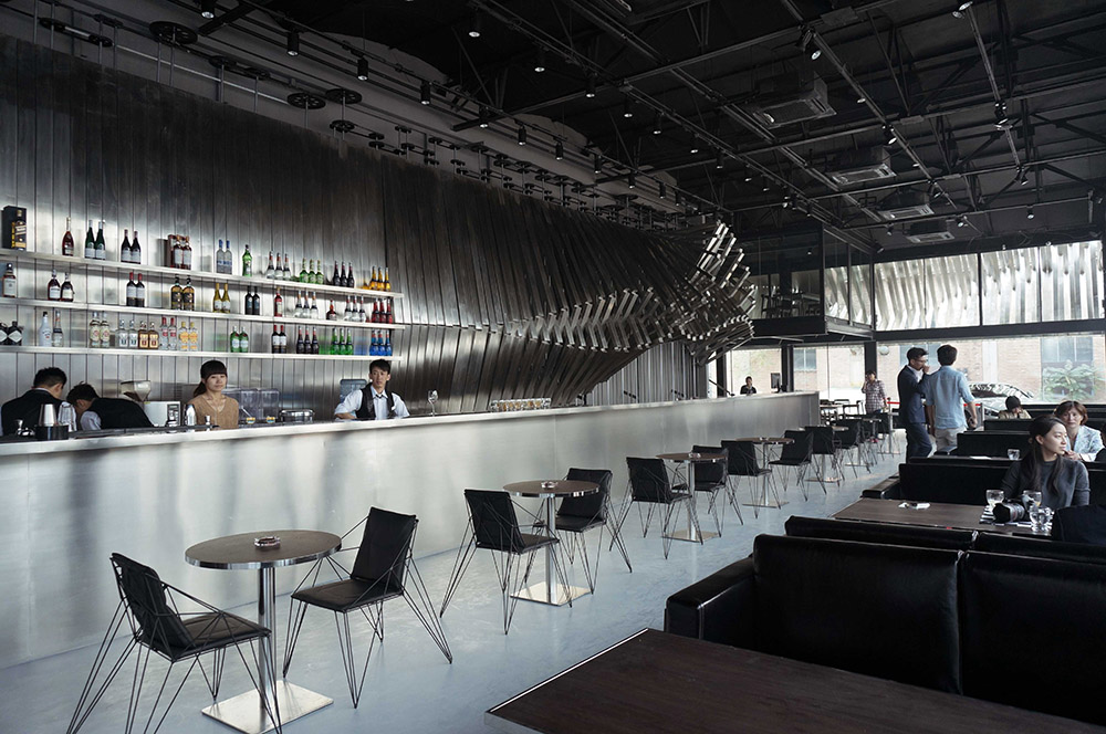 設(shè)計(jì)說明:該咖啡廳是由南京漢拓裝飾工程有限公司裝修的。該咖啡廳的定位就是酷炫,對于設(shè)計(jì)師的要求是結(jié)合工業(yè)現(xiàn)代元素,又要有智能化商業(yè)元素的糅合,設(shè)計(jì)師的基調(diào)是工業(yè)的金屬質(zhì)感,對于材質(zhì)的選材十分講究,塑造了十分硬朗的風(fēng)格,利用金屬材質(zhì)的反光特性,既制造了朦朧的映像,又可以反射光線在室內(nèi),斑駁的光感有別于其他咖啡館的模式。