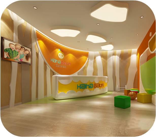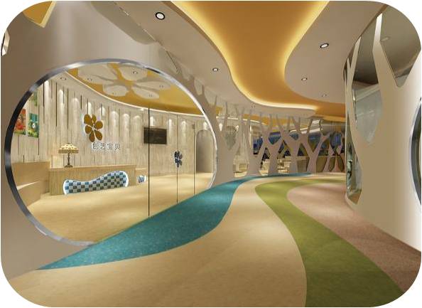 本項目的設(shè)計為多元化的,應(yīng)該充分去理解孩子的內(nèi)心世界而進行設(shè)計。首先,早教中心的設(shè)計要點:安全、環(huán)保、趣味、色彩。表現(xiàn)要點:自然、卡通、陽光、活躍。設(shè)計要點,安全肯定是放在首位,任何細節(jié)的處理都需要把不安全系數(shù)降到最低,比如多用弧面物品,在孩子空間不要出現(xiàn)玻璃等危險品。環(huán)保材料是必須保證的,關(guān)系到孩子的身體健康。趣味以孩子先天的好奇心來為各個空間做不同的異形設(shè)計,給孩子思考及了解外界新事物的空間。色彩類似logo一樣運用一些顏色,讓整體環(huán)境豐富多彩,給孩子帶來感知力。