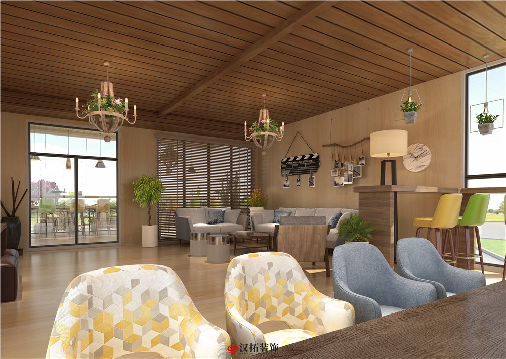 設(shè)計說明:預算:58萬 整體采用森系的設(shè)計風格,隨處可見的綠色搭配著溫暖的色調(diào),綠蔭蔥油的植被包圍著甜味詩意,靜謐的空間瞬間能感染來訪者。光線通透明亮,邊喝咖啡邊曬太陽,讓人遠離城市的喧囂,沉浸其中。