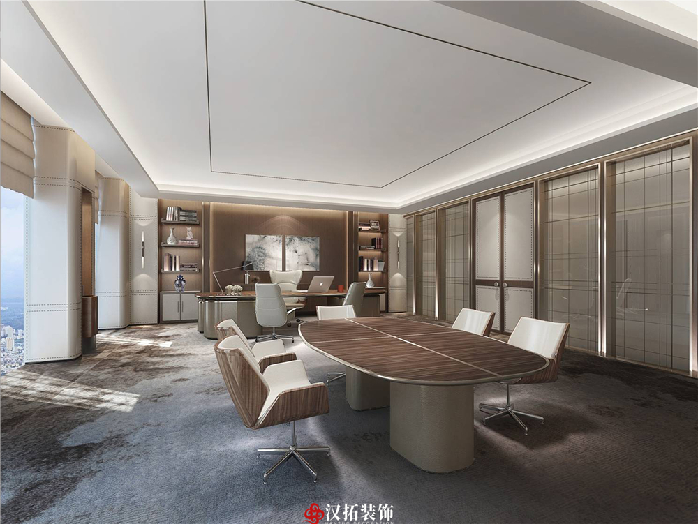設計說明:預算:105萬 色彩搭配除了清透、雅致、穩(wěn)重、大氣之外,亦表現(xiàn)出一種力度感和效率感。滲透入貴機械制造企業(yè)之“清透感”,亦反襯企業(yè)之“柔美感”