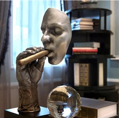 桌面復(fù)古風(fēng)格面具吸煙者工藝裝..